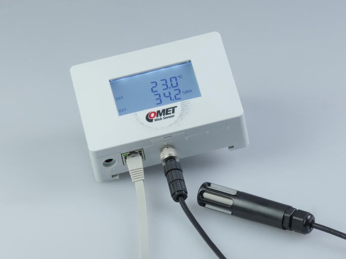 Thanks to the combination of an external probe and an internal pressure sensor, the TA7611 is suitable for applications where multiple environmental parameters must be monitored while maintaining a compact design. Naturally, it features an LCD display, multi-level alarm signaling, and PoE support.